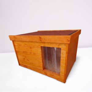 DONN-Hundehütten sind auf einer langlebigen, massiven Struktur aufgebaut, die außen mit schön verarbeiteter, behandelter und gebeizter Wacholderkiefernverkleidung verkleidet ist. Wir haben die Ecken verstärkt, um die Hundehütte noch stabiler und langlebiger zu machen.