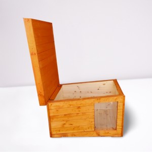 Ein unverzichtbares Zubehör für Besitzer ist das ÖFFNUNGSFÄHIGE Flachdach, das mit einem Neigungswinkel von 10 % ausgestattet ist. Mit seiner Hilfe können sie leicht auf die Reinigung der Hundehütte zugreifen.