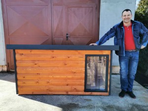 Unsere isolierten Hundehütten halten im Innenraum eine Temperatur, die im Vergleich zur Außentemperatur um 5–12 °C angenehmer ist.