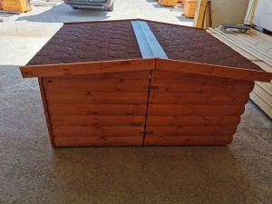 Zu jeder Számel Hundehütte gehört ein aufklappbares Dach – ganz ohne Aufpreis! Dieses clevere Detail macht den Alltag für Hund und Halter deutlich einfacher.